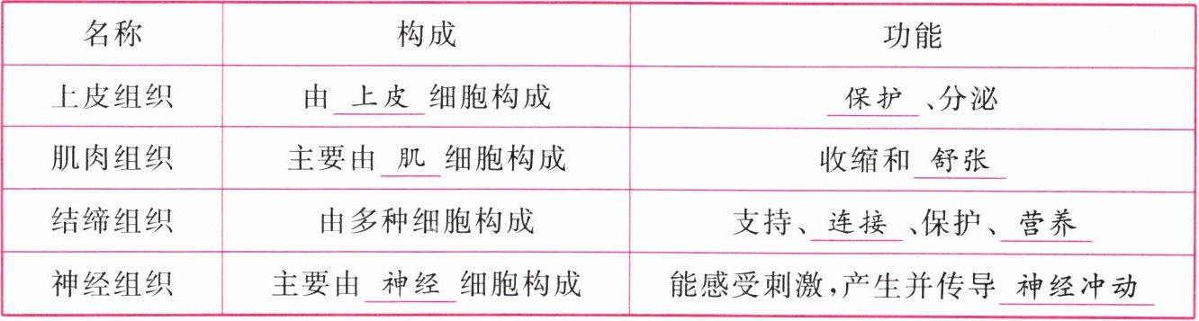 2. 每个细胞群都是由形态相似、功能相同的细胞联合在一起形成的,这样的细胞群叫作组织。