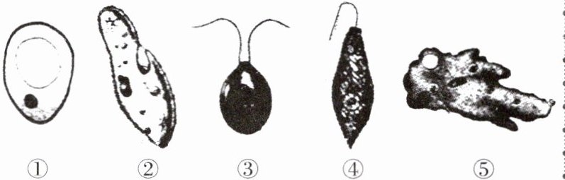 B 点拨:①酵母菌是真菌,体内无叶绿体;②草履虫和⑤变形虫是动物,体内也无叶绿体;③衣藻体内有杯状叶绿体;④眼虫细胞质内也有叶绿体,且两者细胞内都含有线粒体,因而,同时含有能量转换器叶绿体和线粒体的是③④。故答案为 B。
