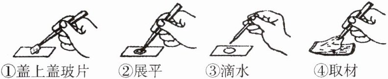 D 点拨:制作临时装片的一般顺序是:向载玻片中央滴一滴清水,撕取观察材料,把材料放在水滴中展平,盖上盖玻片。
