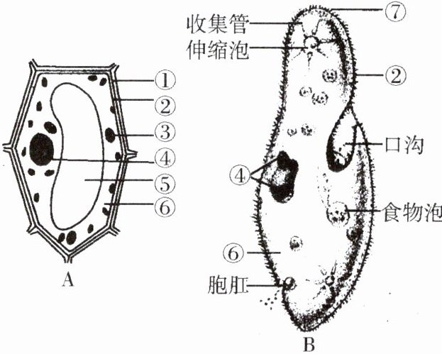 12. A图为植物细胞模式图,B图为草履虫结构示意图。