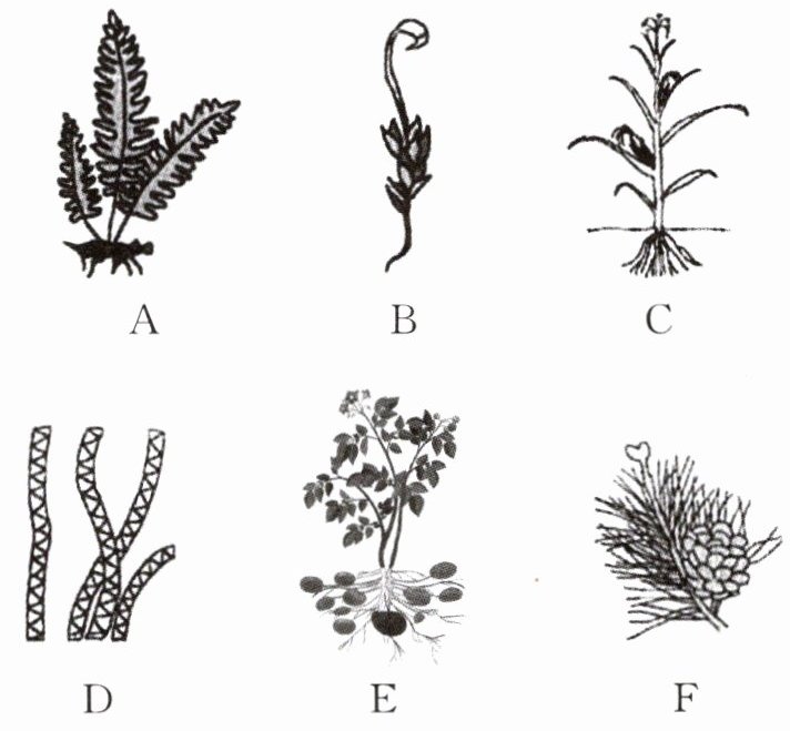 (2) 从结构上看,没有根、茎、叶等器官分化的是______(填字母)类。