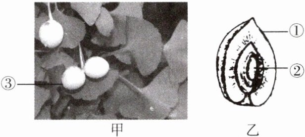 (2) 甲中无①结构,但有______。银杏俗称“白果”,但它不是______,而是______,属于______植物。