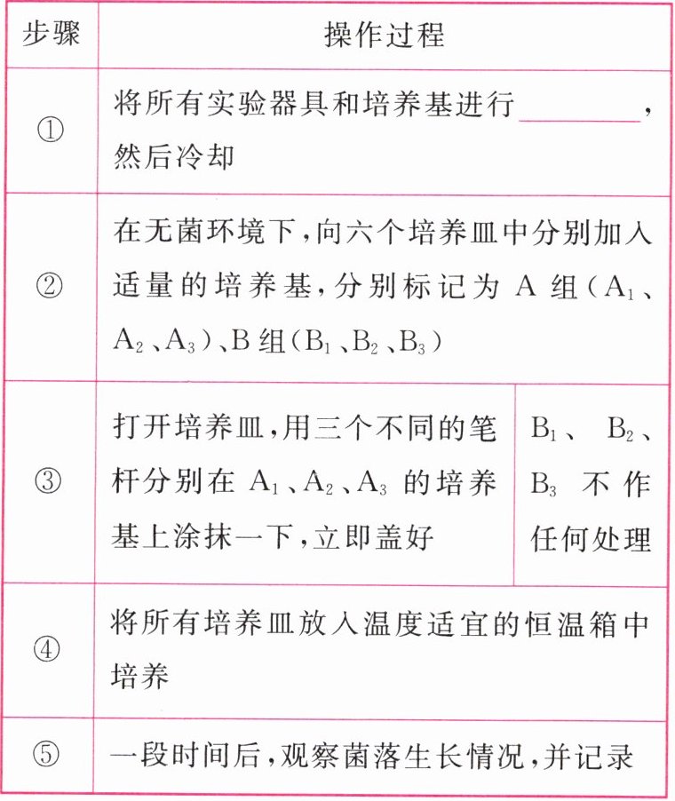 |①|将所有实验器具和培养基进行______,然后冷却|