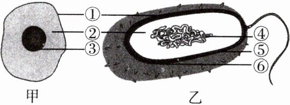 D.甲和乙共有的结构是①细胞膜和②细胞质