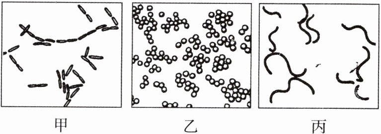 3. 如图所示为细菌的三种类型,图中甲、乙、丙依次是( )
