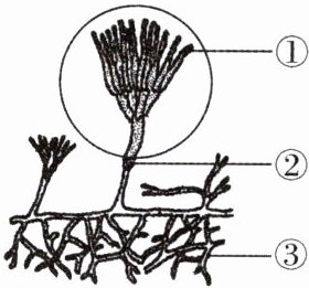 7. 某同学发现家里储藏的橘子长了青绿色的毛,推测可能是青霉的生长和繁殖引起的,如图为青霉结构示意图,下列有关说法正确的是( )