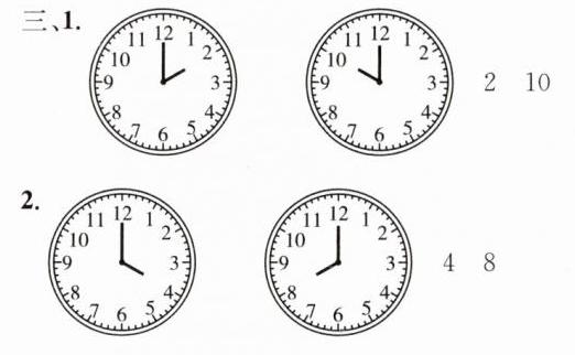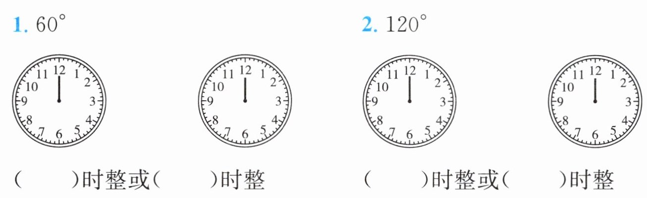 三、请按照给出的度数画出相应的时针,并写出所表示的时间。