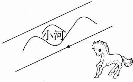 1. 小马要到河对岸去,它怎样过河最近?请画图表示。(黑点表示小马过河的位置)