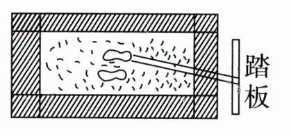 不准确 裁判员应该测量小勇离踏板较近的脚后跟与踏板之间的垂直线段的长度,而图中的测量方法不是垂直线段的长度,比小勇跳的实际距离长了,因此不准确。