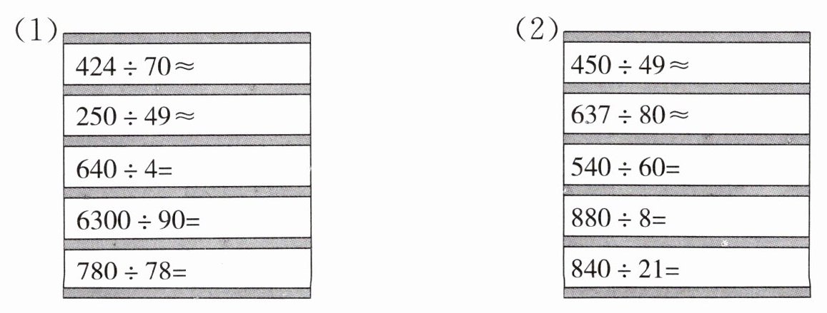 (4)除数是两位数的除法,一般按照“四舍五入”法把除数看作和它接近的整十数来试商。