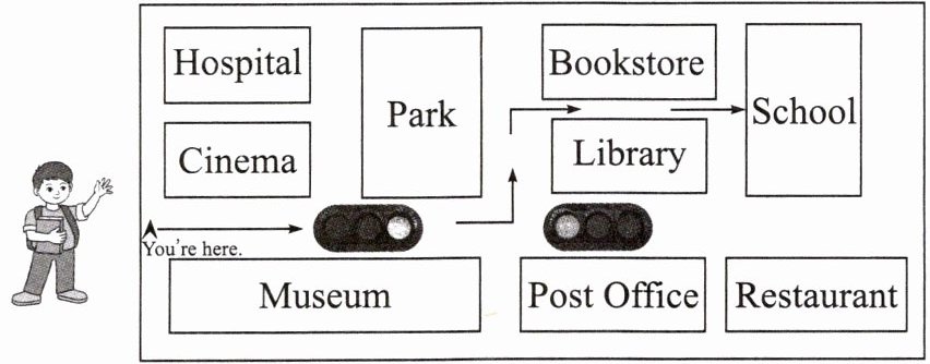at the second traffic lights(交通信号灯). Then go straight again. Next,4. turn