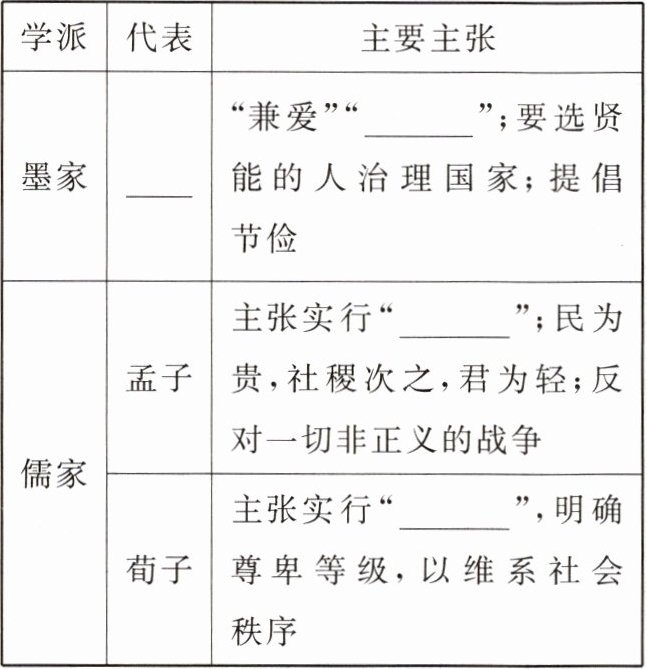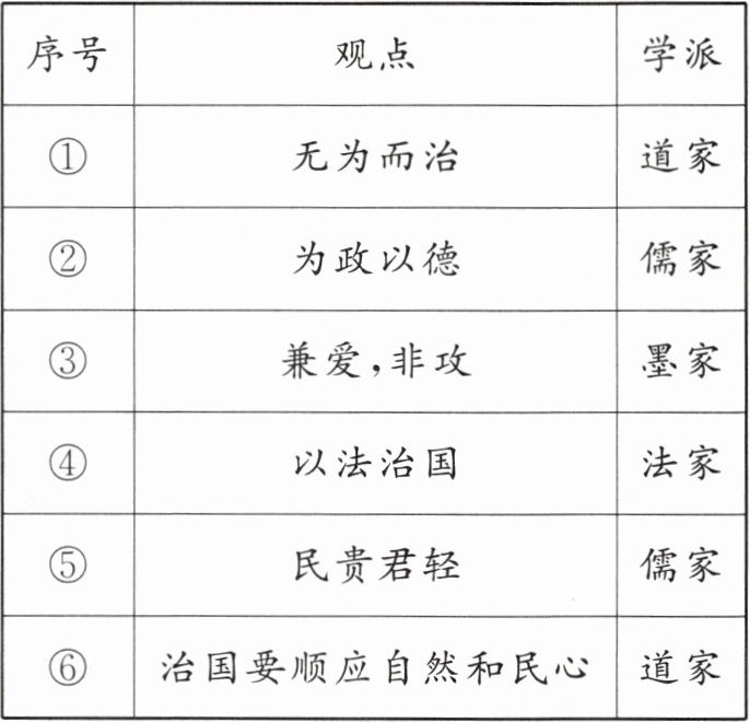 ——宋长友、肖厚建《中国历史》材料三 先秦诸子百家的部分主张