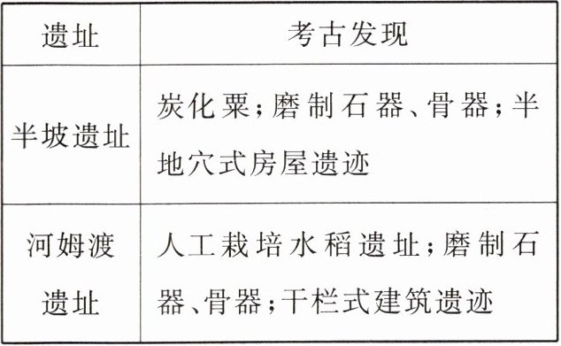 3. 对比分析下表中的“考古发现”的内容,半坡人和河姆渡人相同的生产生活方式是(