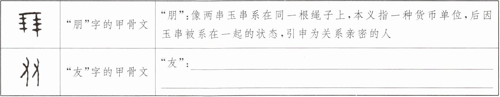 | 甲骨文“友” | “友”字的甲骨文 | “友”:______ |