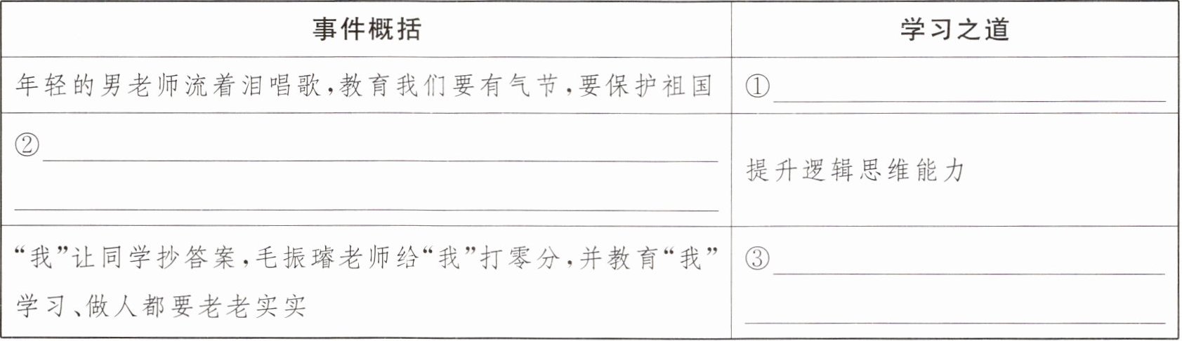 | “我”让同学抄答案,毛振璿老师给“我”打零分,并教育“我”学习、做人都要老老实实 | ③______ |