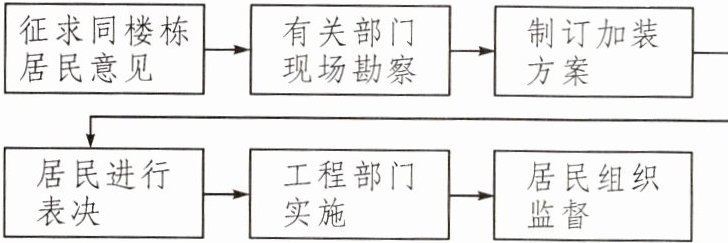 征求同楼栋居民意见→有关部门现场勘察→制订加装方案