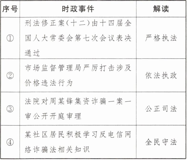 8. “警察同志,我父亲病重需要转院,时间紧迫,实在是没有合适的车位,不得已才在此停车,还望理解。”“祝您父亲早日康复!”一位车主的纸条留言和交警开出的特殊“罚单”——温馨提示单同框出现在社交平台上,广大网友纷纷为交警的柔性执法点赞。交警的柔性执法( )