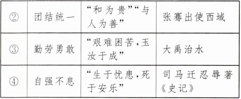 |②|团结统一|“和为贵”“与人为善”|张骞出使西域|