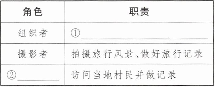 (1)①确定目的地、规划活动路线、制定组织纪律等。(言之有理即可,1分)②采访者。(1分)