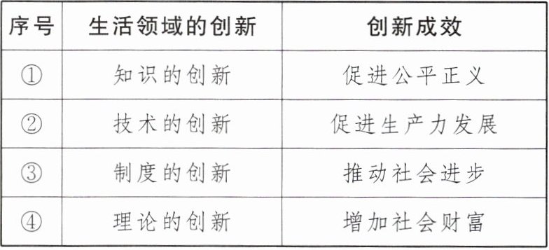 6. 某校九年级道德与法治老师在讲述“生活的各个领域都需要创新,也都可以创新”时,展示了以下知识表格,你认为下面知识表格中正确的是( )