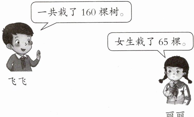 (5)总量是一共栽树的棵数,分量是男生和女生栽树的棵数。男生栽树:160-65=95(棵),男生比女生多栽:95-65=30(棵)。