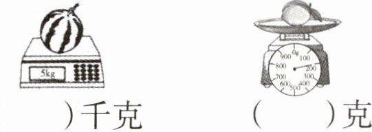 解析:本题考查对克与千克这两个质量单位的认识以及结合实际物品选择合适单位的能力。克通常用于计量较轻的物体,千克通常用于计量较重的物体。