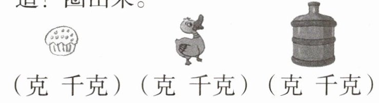 (4)计量下面的物品用哪个单位比较合适?圈出来。