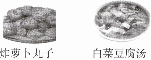 )种不同的搭配方法。(连一连。)炸萝卜丸子