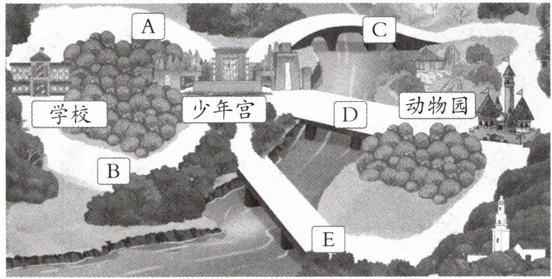 从学校到少年宫有2种走法(A、B),从少年宫到动物园有3种走法(C、D、E)。