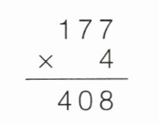 $\begin{array}{r} 177\\ ×\ \ \ 4\\ \hline 408\end{array} $ $(×)$