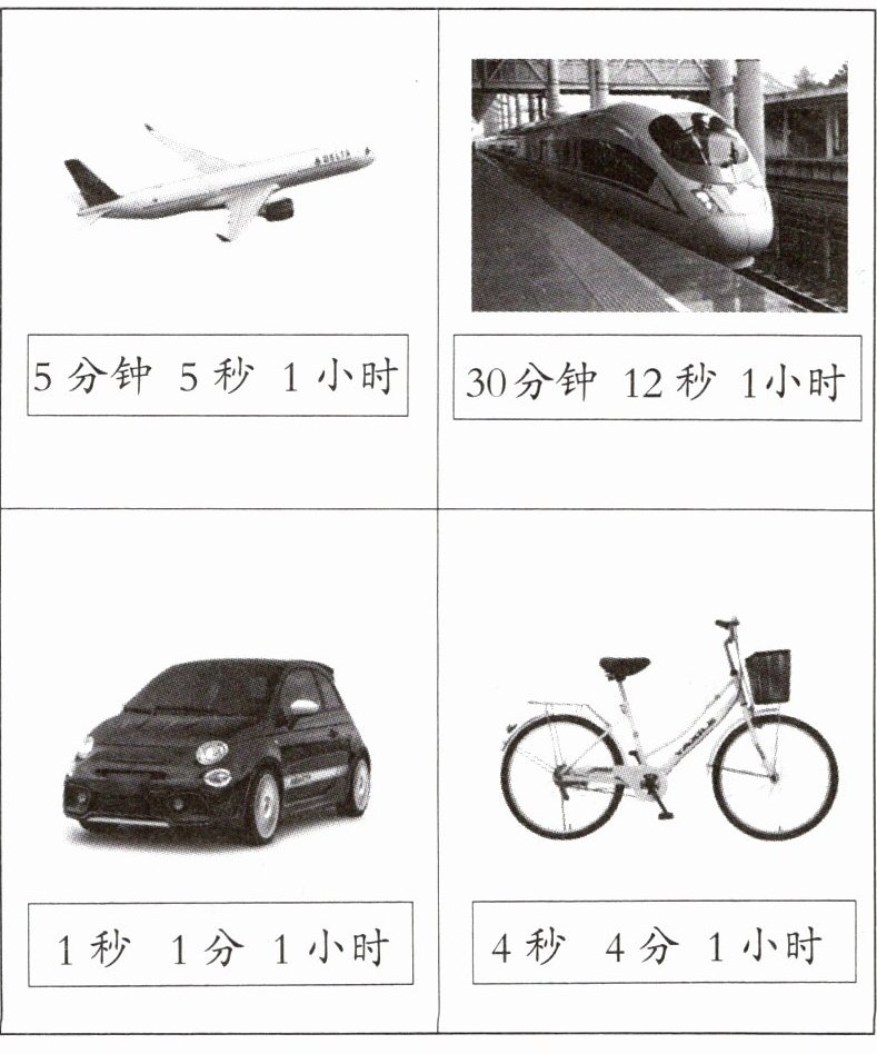 8. 用下面的出行方式行 1 千米需要多长时间?圈出合适的答案。