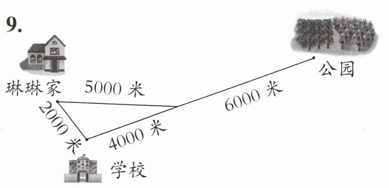 10. 小丽星期六骑车去奶奶家,去的时候每小时行 9 千米,2 小时到达。回来的时候骑得很慢,3 小时才到家。回来的时候平均每小时骑行多少千米?