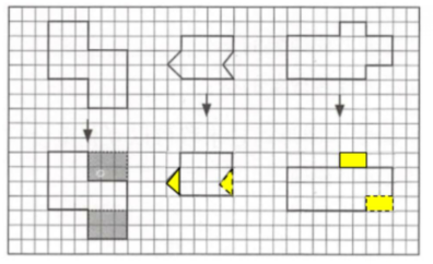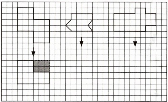 7. 请仿照下面的例子,把另外两个图形也变成长方形,并画一画。