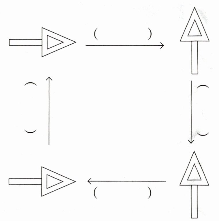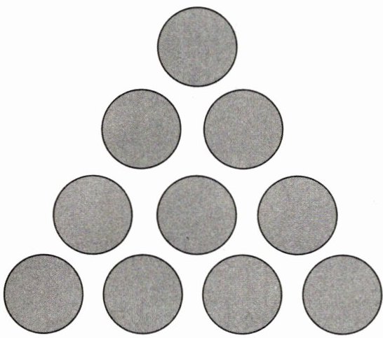 9. 请你平移3颗棋子,使三角形颠倒过来。(可以用箭头标示。)