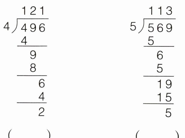 $\begin{array}{r r r r r r r r r }&&&1&1&3 \\ \hline &5&)&5&6&9 \\ &&&5 \\ \hline &&&&6 \\ &&&&5 \\ \hline &&&&1&9 \\ &&&&1&5 \\ \hline &&&&&4\end{array}$