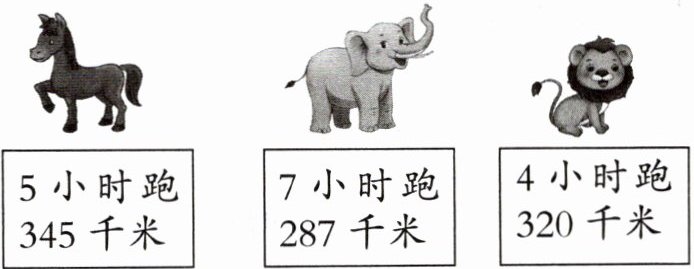 大象的速度:$287÷7 = 41$(千米/时);