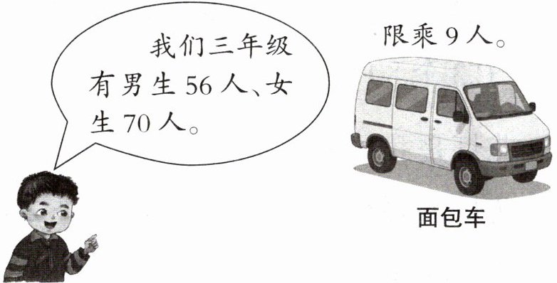 7. 秋游租车,三年级同学都乘坐面包车,需要租多少辆这样的面包车?