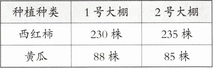 答案:(1)$1$号大棚总量$ = 1$号大棚西红柿株数$ + 1$号大棚黄瓜株数;$2$号大棚总量$ = 2$号大棚西红柿株数$ + 2$号大棚黄瓜株数。