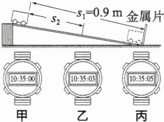 算出小车通过斜面全程的平均速度 $ v_{1} $.④将金属片移到中点,测出小车到金属片的距离 $ s_{2} $.