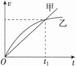 D.$t_{1}$时刻甲、乙两队速度相等