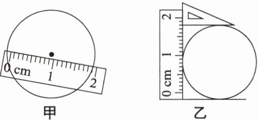 零刻度线没有与圆的左侧对齐,直尺边缘没有过圆心