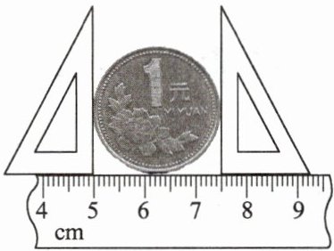 4. 如图所示,$ 1 $ 元硬币直径的测量值是