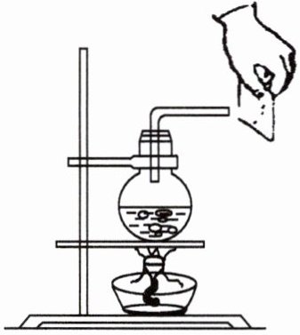 (2)用如图所示的装置将沸腾时产生的水蒸气通入试管,水槽$B$中装有冷水. 一段时间后,我们会看到在试管内有水出现,这是由于水蒸气遇冷