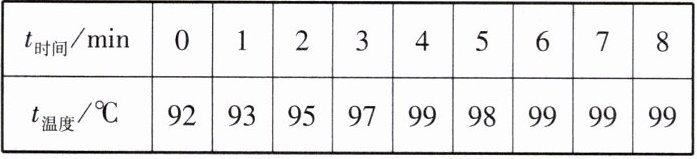 | $t_{温度}/^{\circ}C$ | $92$ | $93$ | $95$ | $97$ | $99$ | $98$ | $99$ | $99$ | $99$ |