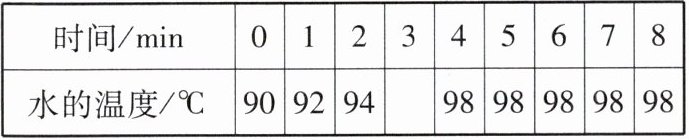 | $98$ | $98$ | $98$ | $98$ | $98$ |根据表中实验数据可知,水的沸点是