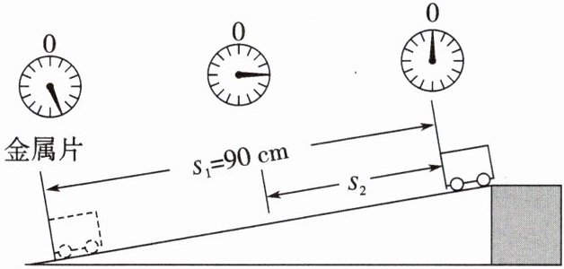 某同学在实验室里做“测平均速度”的实验,实验过程如图所示,图中秒表每格为$1s$。该次实验中,小车通过全程的平均速度$v_{1}= $