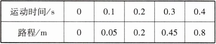 | 路程/$ m $ | $ 0 $ | $ 0.05 $ | $ 0.2 $ | $ 0.45 $ | $ 0.8 $ |
