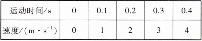 | 运动时间/$ s $ | $ 0 $ | $ 0.1 $ | $ 0.2 $ | $ 0.3 $ | $ 0.4 $ |