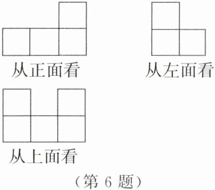 6. 如图所示的是从三个方向看到的由若干棱长为1的小立方块搭成的几何体的形状图,所搭成的几何体所用的小立方块的个数是