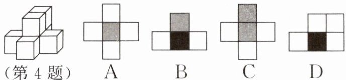 4. 如果用$□$表示1个小立方块,用$\blacksquare$表示2个小立方块叠加,用$\blacksquare$表示3个小立方块叠加,那么图中由7个小立方块搭成的几何体,从正面看,其形状图是(
